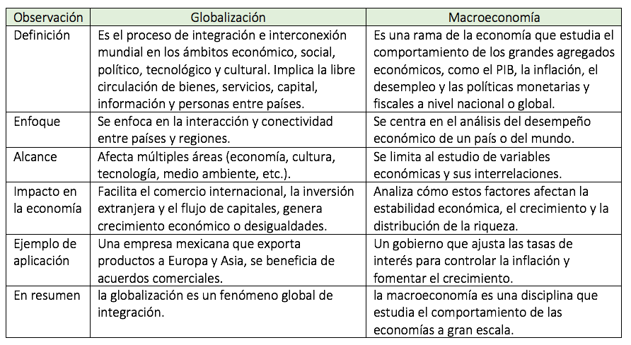 Ambos conceptos (Globalización y Macroeconomía) son pilares para analizar la economía moderna y comprender cómo las acciones a gran escala, tanto a nivel nacional como internacional, afectan el bienestar de la sociedad.